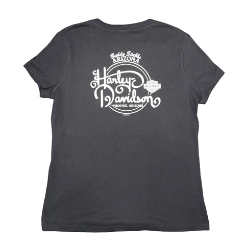 Fierce meets feminine in this ultra-soft 100% cotton tee that channels raw instinct and untamed spirit. The front graphic features a striking wolf surrounded by delicate florals—symbolizing strength wrapped in grace. “Harley-Davidson” lettering in fiery gold adds edge, while the cursive “Power and Pride” tagline seals the message: this tee doesn’t whisper, it howls.