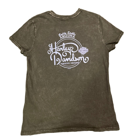 Legacy never fades. This black mineral washed tee celebrates Harley-Davidson’s roots with stylized purple lettering and intricate flourishes that frame the iconic bar & shield. “EST. 1903” and “Harley-Davidson” ground the design in authenticity, while the soft fabric and tailored fit deliver modern comfort with timeless edge.