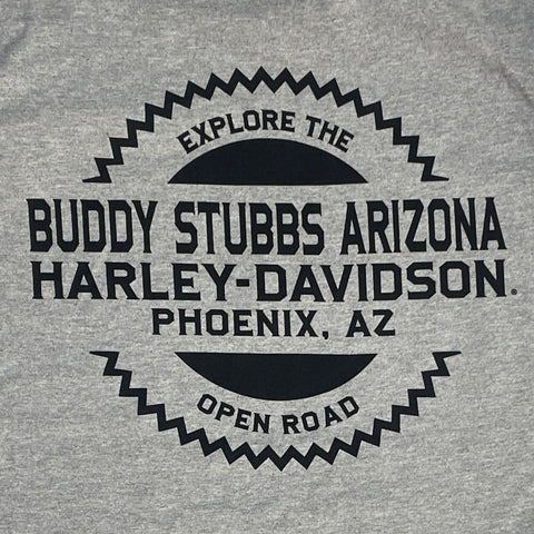 Command attention with every mile in the Buddy Stubbs Harley-Davidson long sleeve tee- a bold tribute to the spirit of the open road and power of presence.