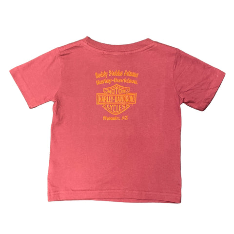 Let your little rider rep the legend in style. This deep red short sleeve tee is crafted from soft, all-natural cotton knit for comfort that lasts through every adventure. The front features an eagle tearing through the shirt, bold and unmistakable, while the back showcases Buddy Stubbs Harley-Davidson.