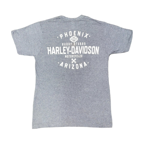 Born from desert heat and garage grit, this exclusive Buddy Stubbs design hits hard with a rock-inspired edge. The front features a bold AZ-HD stamp—sun-scorched and unapologetic. On the back, two crossed wrenches form a defiant emblem of custom culture and dealership pride. It’s a tribute to the riders who build, break, and rebuild—true to the road, true to the wrench.
